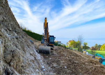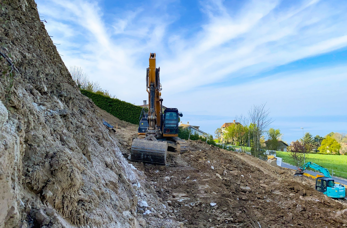 C’est face à un magnifique panorama sur le lac et les montagnes que la pelleteuse mécanique s’est mise en marche.
