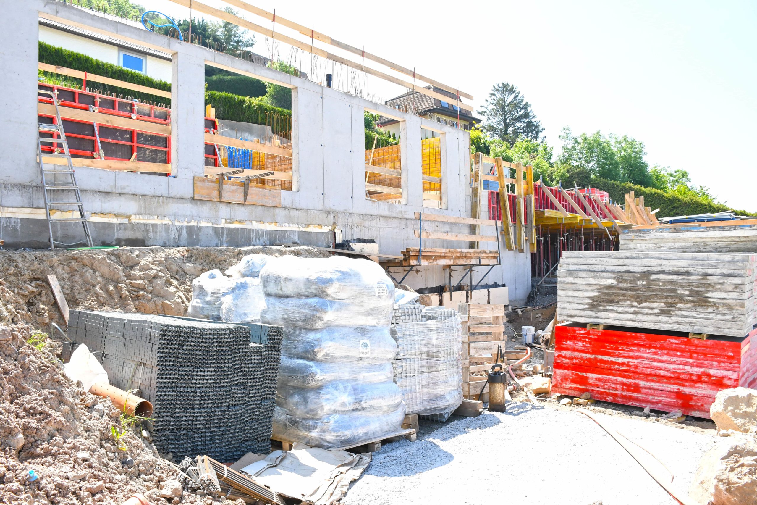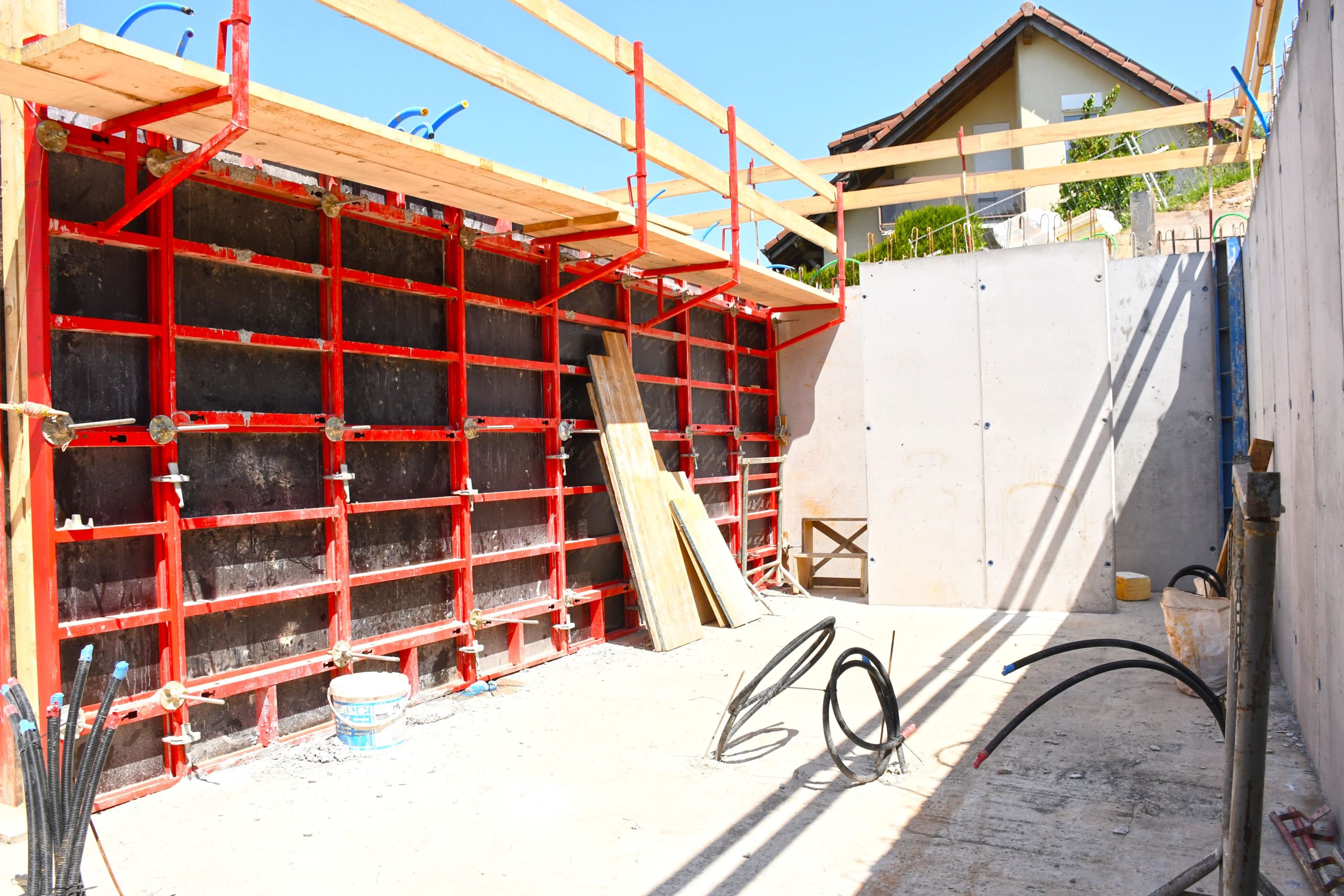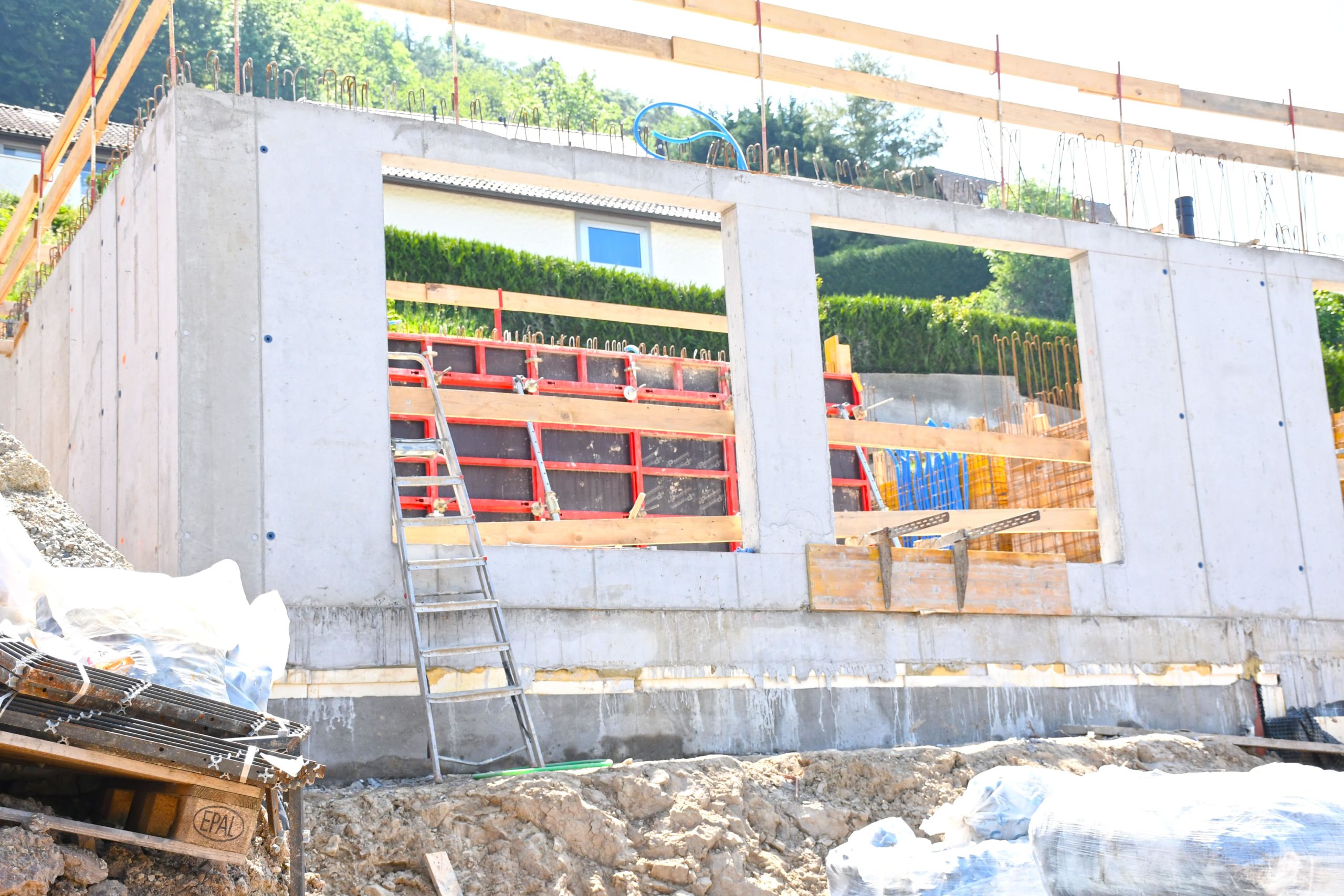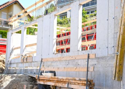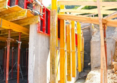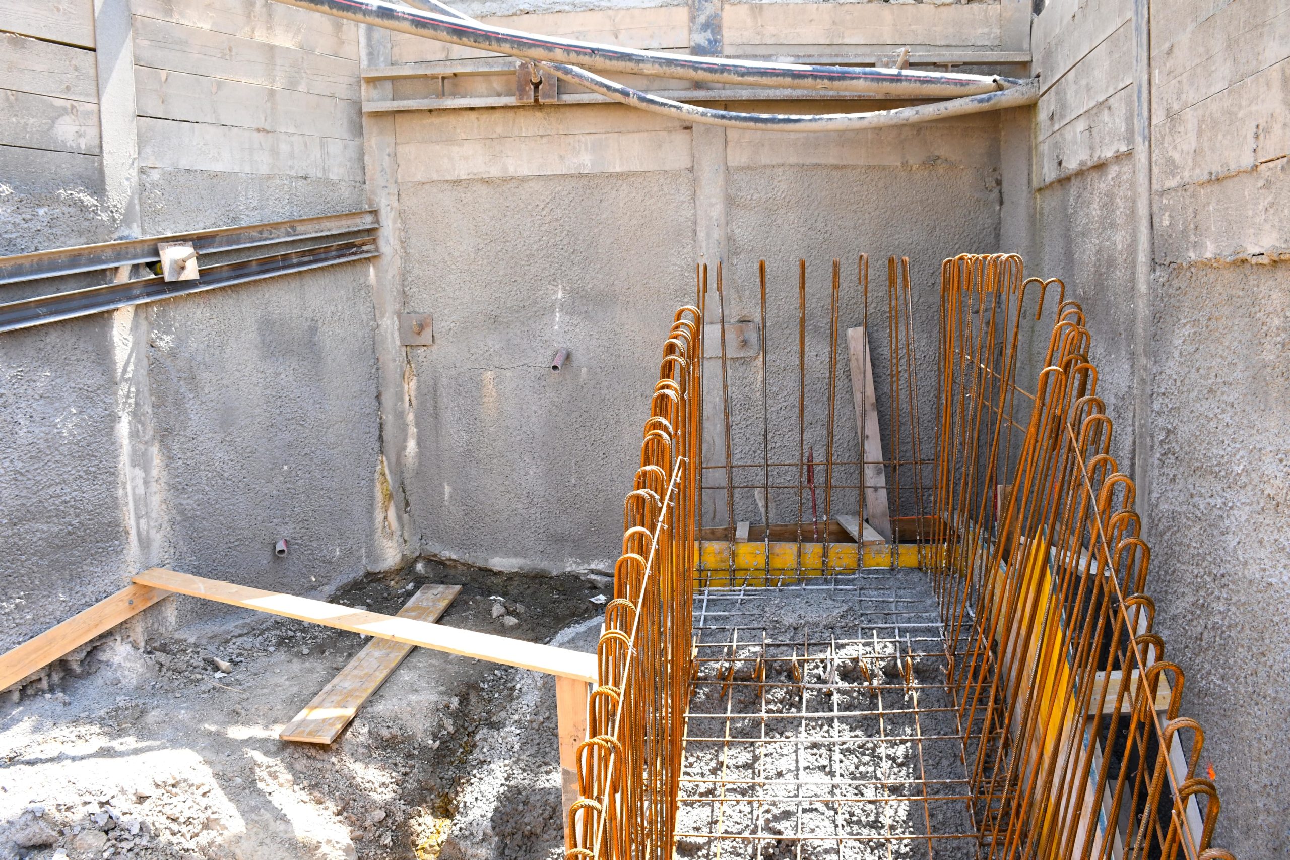 Alors que le parking du bâtiment A se referme, les premiers murs du rez inférieur apparaissent. .