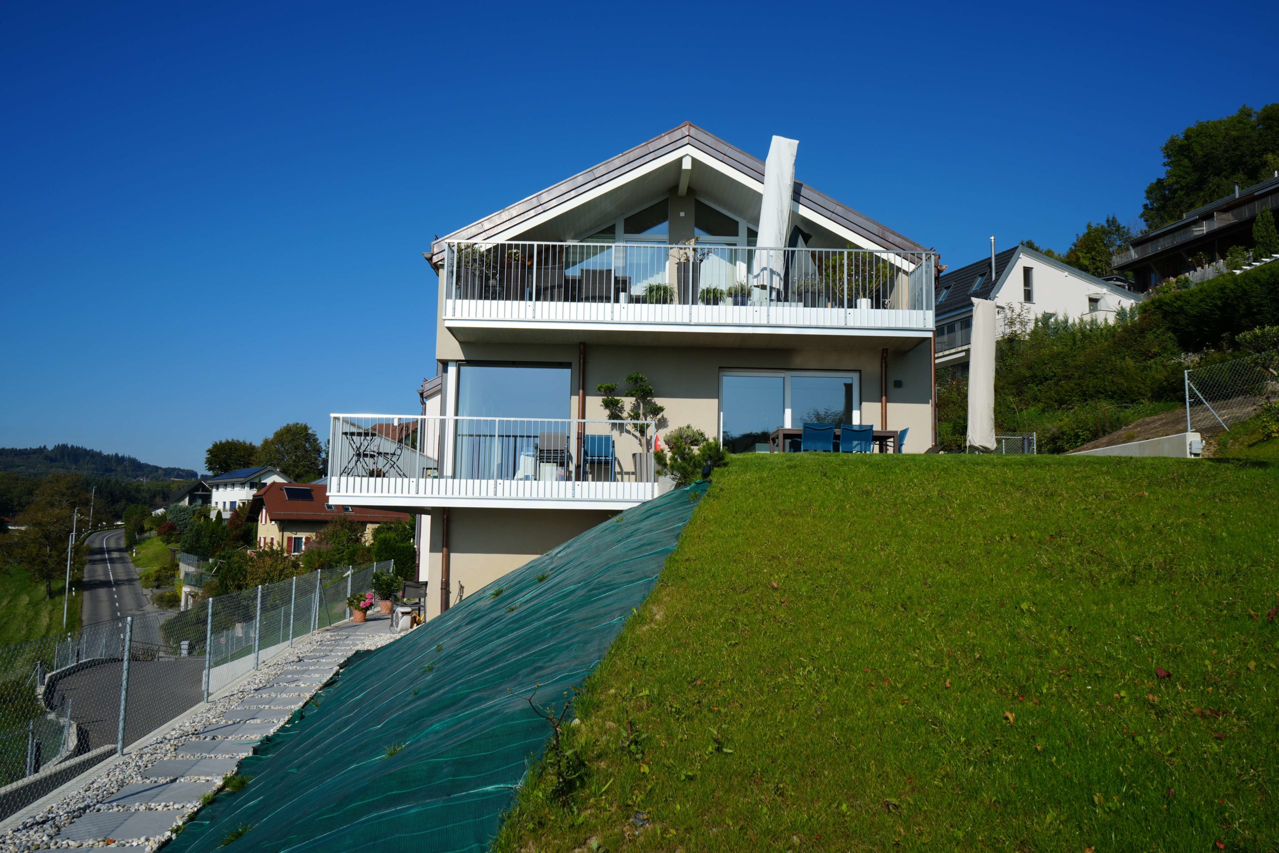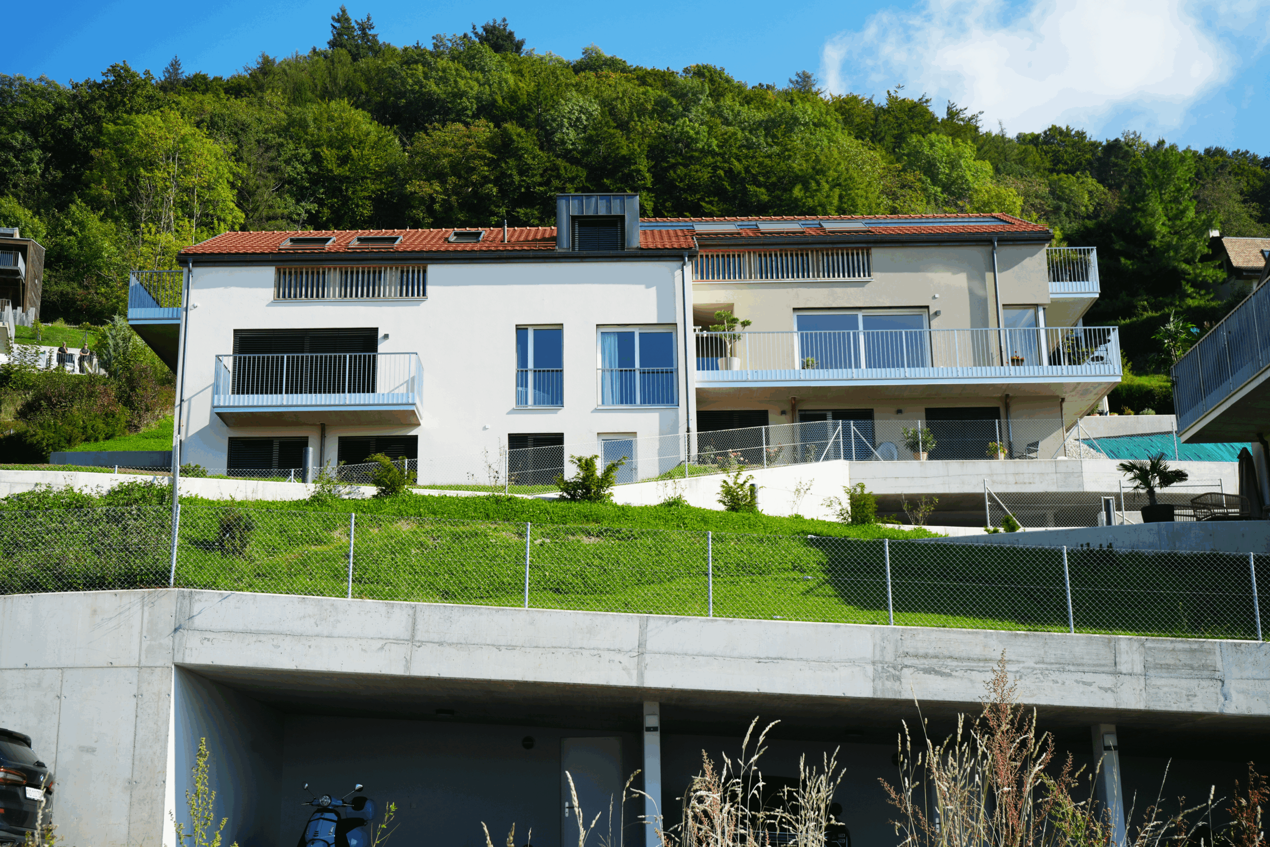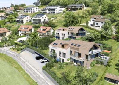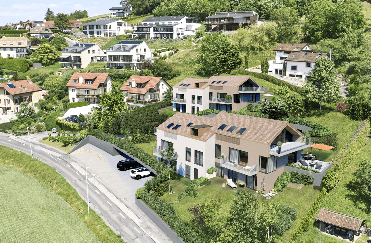 Idéalement situés face au lac Léman et aux Alpes, ces logements offrent un cadre paisible et lumineux. Conçus avec des matériaux durables et une isolation performante, ils reflètent le savoir-faire de Dumnica SA en matière de bâtiments modernes, durables et écoénergétiques.