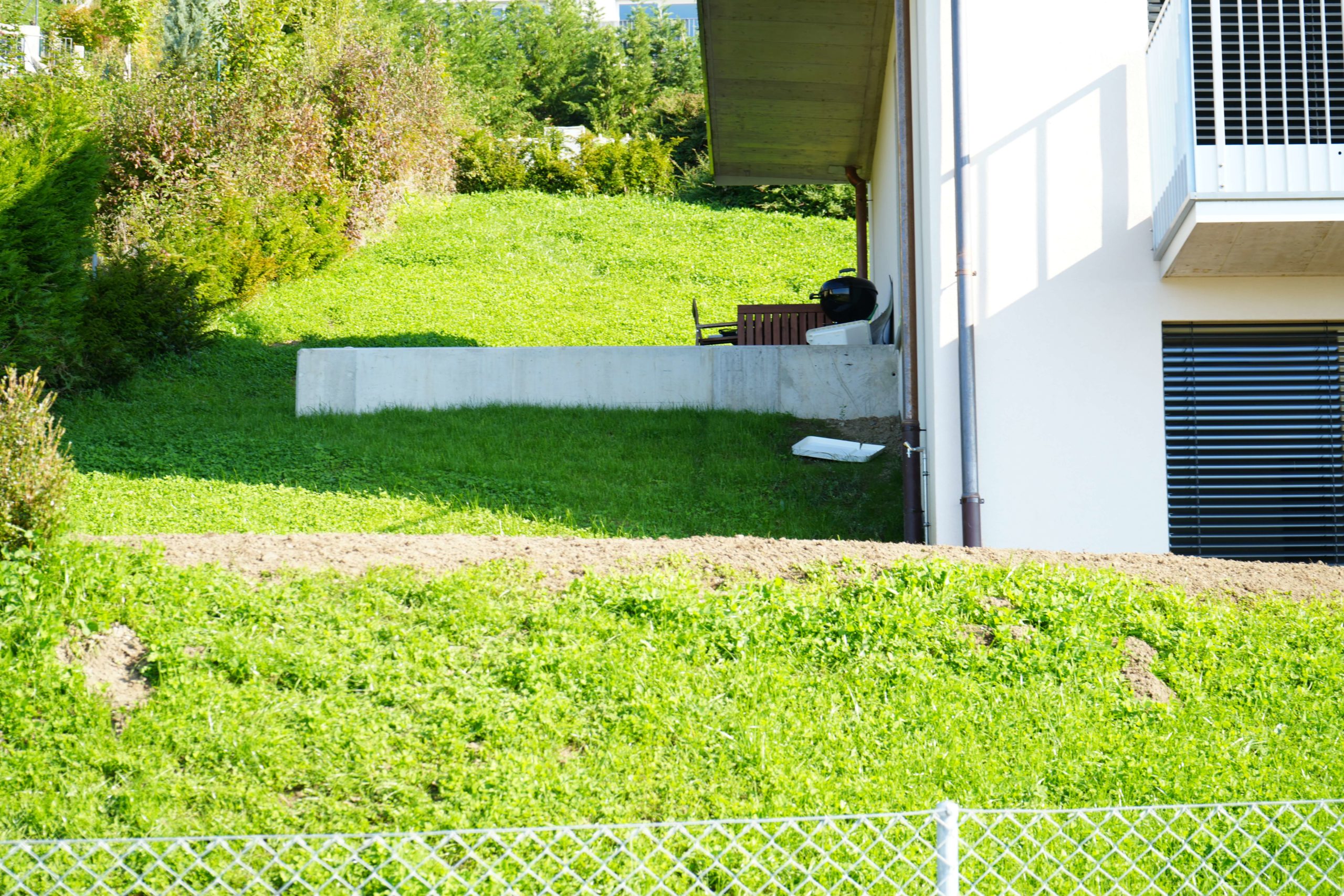 La bonne terre a ainsi été retirée pour être utilisée à la fin du projet. Le terrain, quant à lui, est façonné petit à petit, motte de terre après motte de terre. C’est le terrassement qui prend vie.